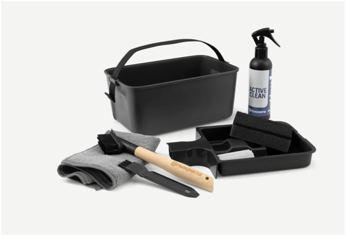 Puhastus- ja hoolduskomplekt, mis muudab Husqvarna Automower® robotniiduki ideaalses seisukorras hoidmise lihtsaks. See komplekt sisaldab kõike, mida vajad murujääkide ja mustuse eemaldamiseks ning robotniiduki puhastamiseks aktiivsel hooajal. Komplektis on kaks harja – väike kitsastele ja raskesti ligipääsetavatele pindadele ning suur, mida saab kasutada veevoolikuga. Husqvarna Active Clean Spray puhastusspreid on lihtne peale kanda, see eemaldab väga tõhusalt mustuse ning on nii fosfaadivaba kui ka biolagunev. Oluliste asjade (nt tööriistade ja lõiketerade) hoiustamine ja korrastamine muutub lihtsaks tänu karbis olevatele spetsiaalsetele taskutele.